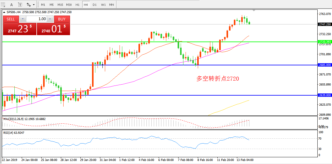尽管美国总统特朗普周二表示对民主党与共和党议员在周一达成的建设55英里新边境墙的临时协议感到不满,但他同时表示政府不大可能再次关门,外加市场被贸易局势提振了风险偏好,美股集体高开,标普500指数高开7.62点,报2752.35点,短线冲高后震荡下行,最终收涨8.30点,报2753.03点。