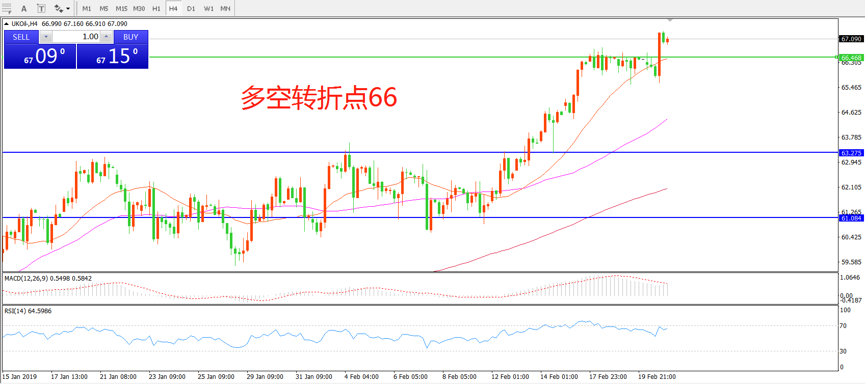 交易策略:在66.50之上看涨,目标67.00 70.00