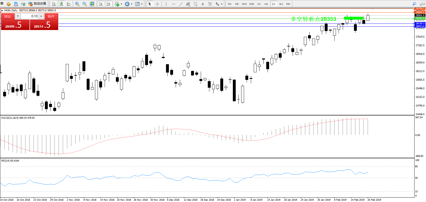 亚洲股市普涨,其中恒指涨1%,沪指和深成指小幅收涨,香港恒生指数高开后维持高位震荡,截至收盘涨1.01%,报28514.05点,。随着中方代表团抵美,市场继续关注经贸磋商进展。特朗普说,“我不能准确告诉你们时间安排,(3月1日)这个日期不是一个神奇的日期,因为很多事情正在发生。我们将拭目以待。”
