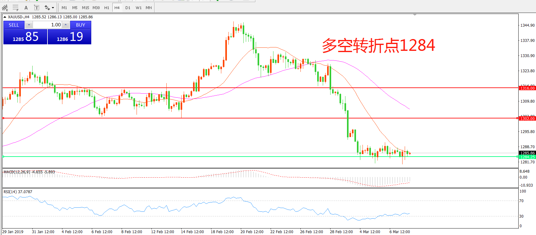 周四(3月7日),欧洲央行明显转向鸽派,不仅保持现有的超低政策利率不变,还将加息时间至少推迟了半年。消息刺激下,美元大幅上涨,最高触及97.38,现货黄金在周四继续小幅走低,一度逼近1280美元低位,虽然随后收复部分失地,但仍受阻于1290水平。今晚21:30分,美国劳工部劳动将公布非农就业数据,前值为30.4万,预期值18万,此次数据表现至关重要。