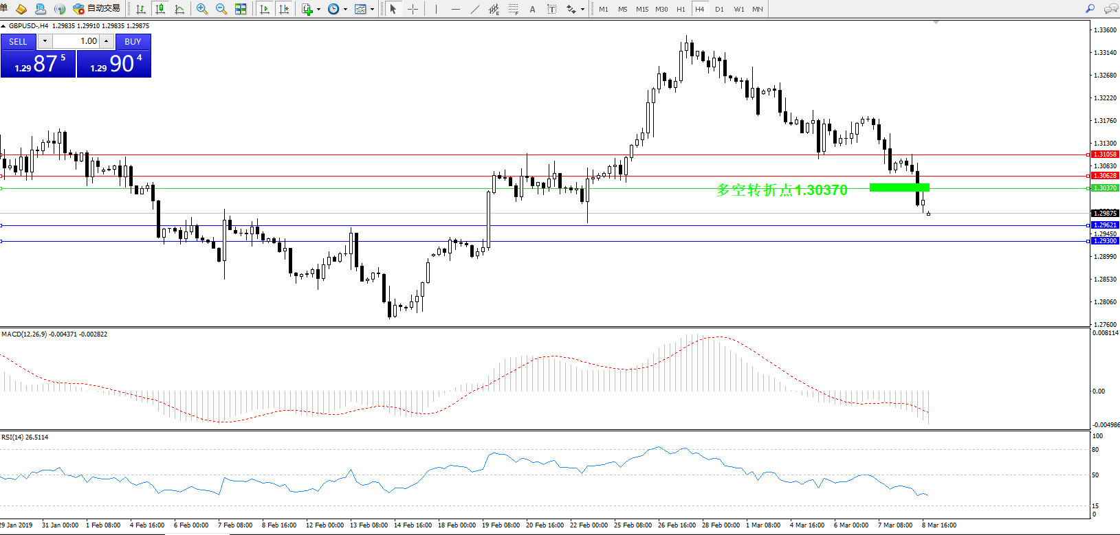 交易策略:1.30370下方看跌,目标1.296211.29300