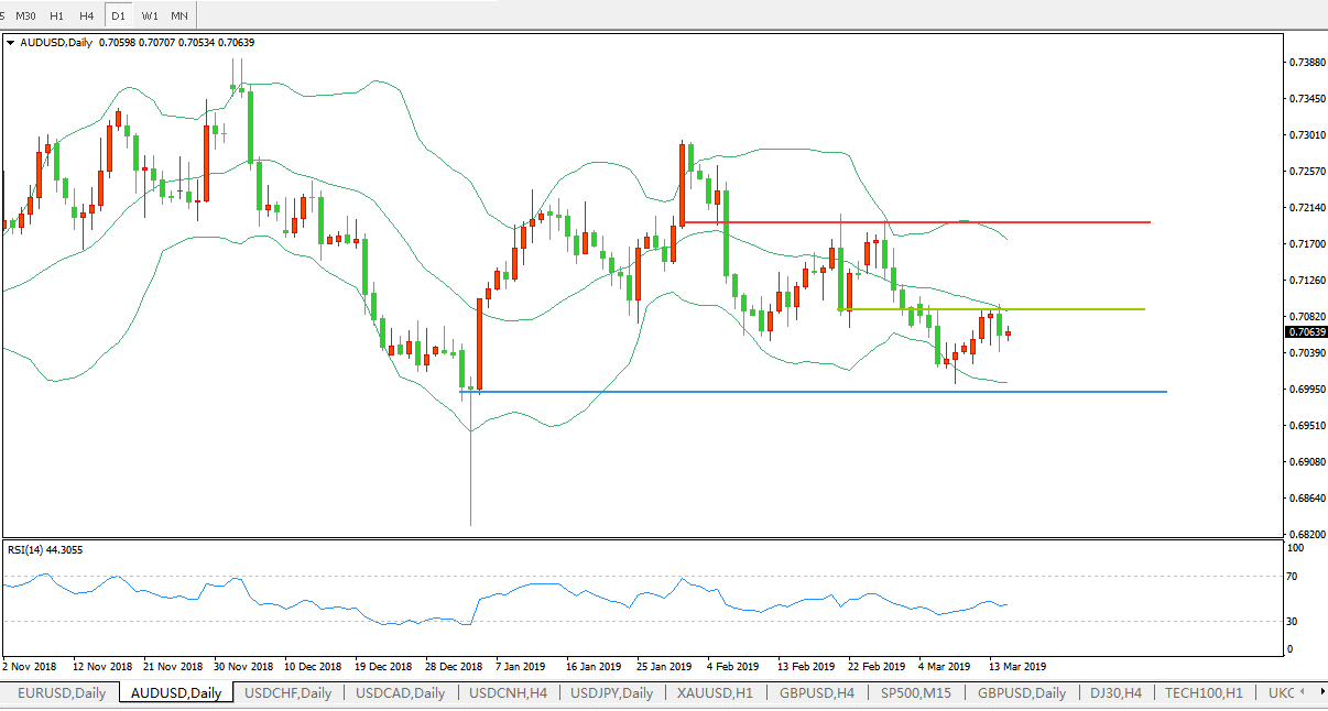 基本面分析:受中国公布经济数据影响,中国1-2月社会消费品零售总额符合预期,但1-2月规模以上工业增加值不及预期,商品货币集体走低。另外,关于全球贸易局势而言,仍面临诸多不确定性,澳元结束多日来的反弹走高态势,开始走软。