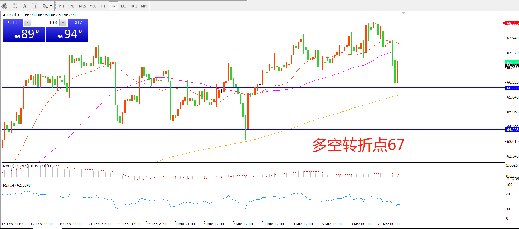 交易策略: 在67.00之下看跌,目标66.00    64.00