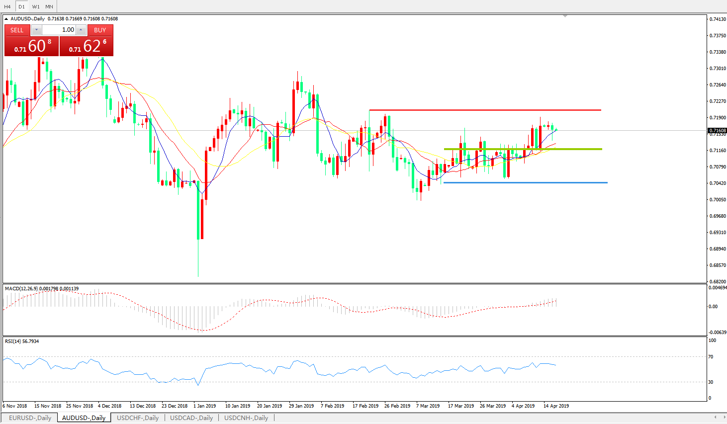 澳洲联储会议纪要鸽派短暂施压了澳元,但澳元多头趋势仍然明显,鸽派的纪要给出投资者买入机会。澳洲联储降息预期对澳元仅仅是短暂施压,影响澳元走势的是中国市场的情绪,而目前中国市场风险偏好情绪较强,这将继续支撑澳元。日内澳美方面的注意力必须投放到中国地区经济数据,将公布的GDP、零售销售和工业产出数据。澳元在过去两个月持续在0.7200-0.7000区域震荡交投;如果数据意外乐观,则澳元或升向0.72区域伴有突破的可能,中美贸易的乐观预期仍持续的背景下。