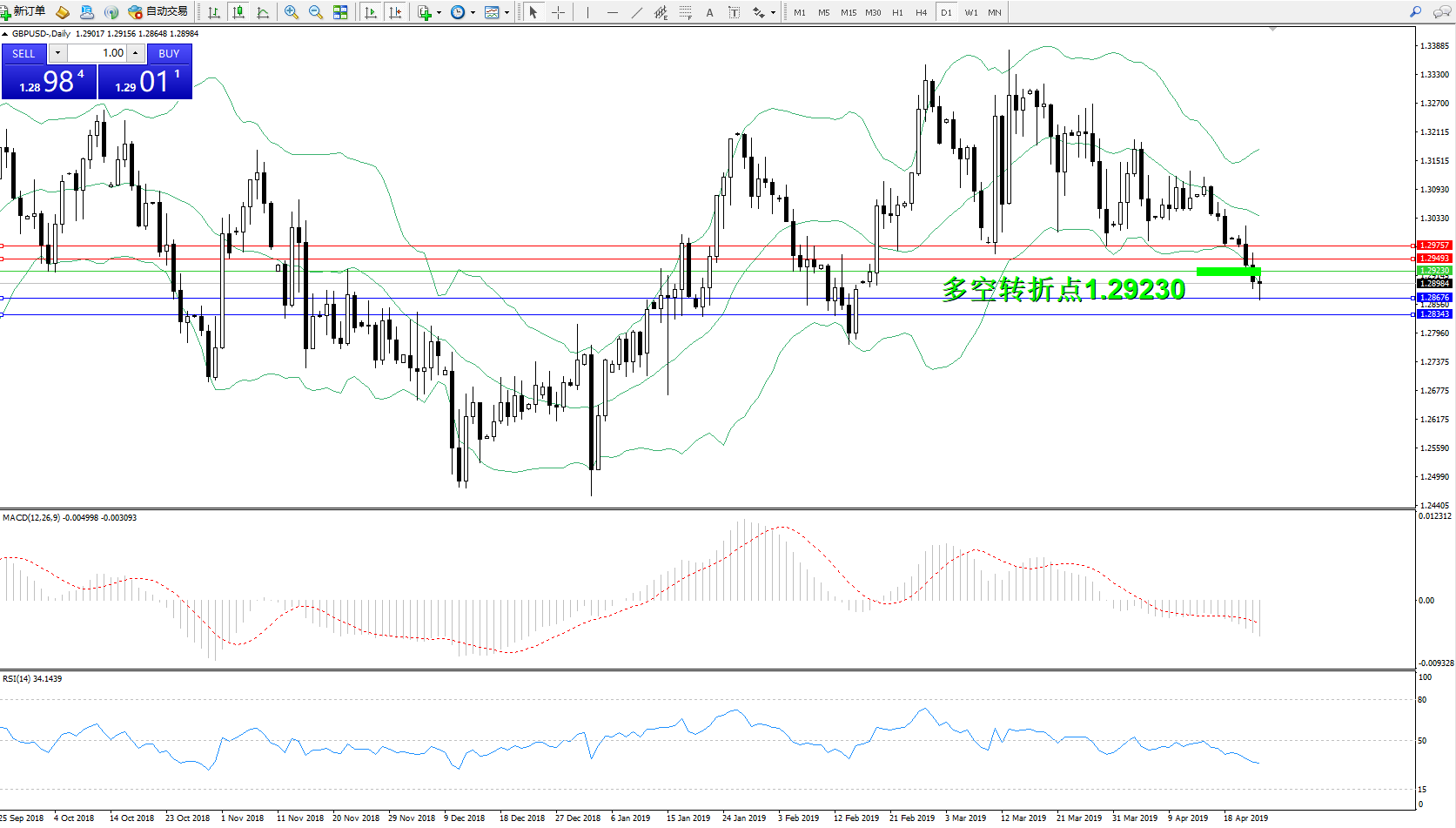 交易策略:1.29230下方看跌,目标1.28676、1.28343