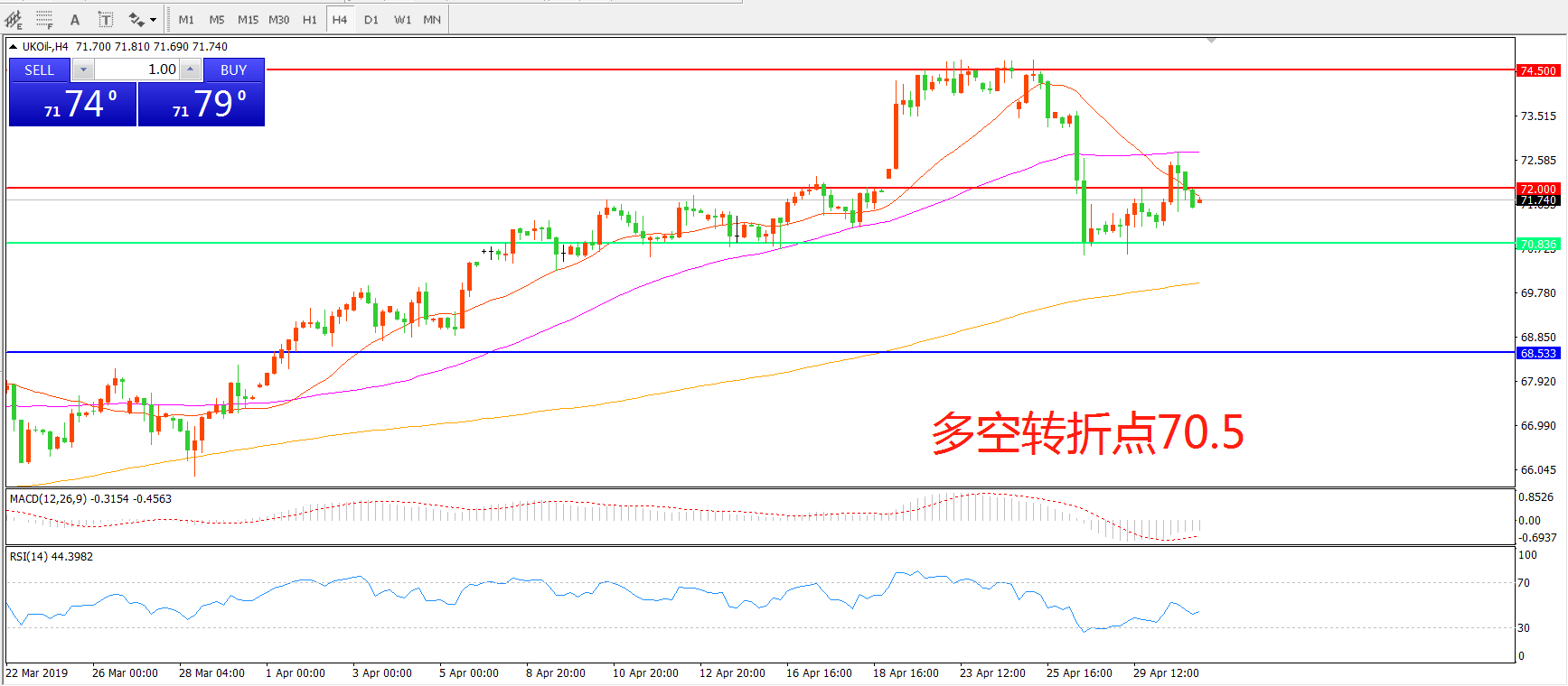交易策略:在70.50   之上看涨,目标72.00    74.50