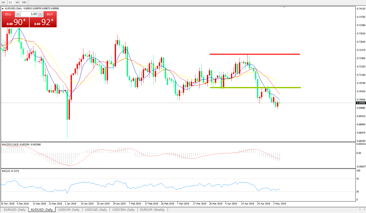 交易策略:在0.7110之下,看跌,目标价位为0.7000,然后为0.6920。