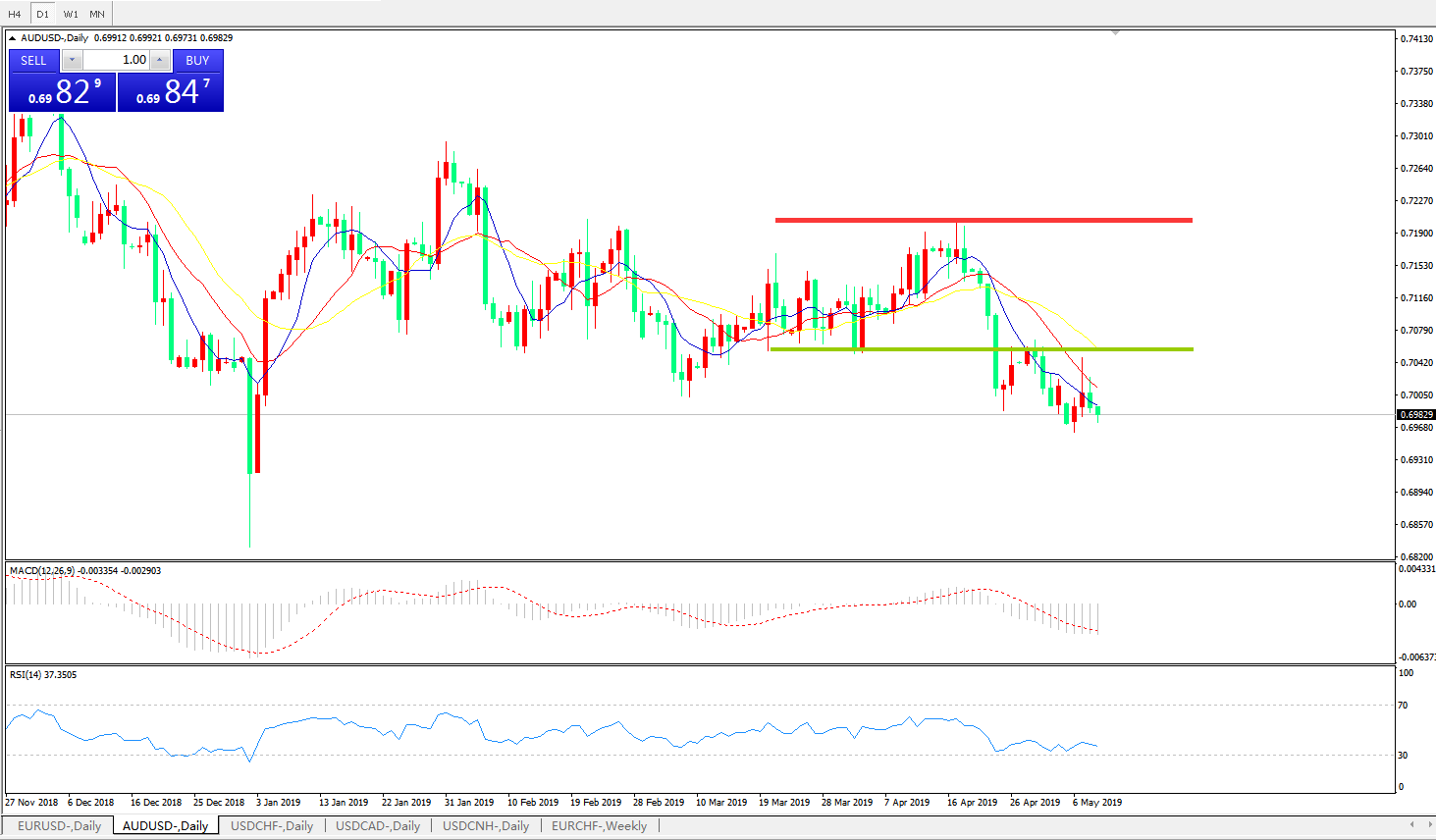 交易策略:在0.7110之下,看跌,目标价位为0.7000,然后为0.6920。