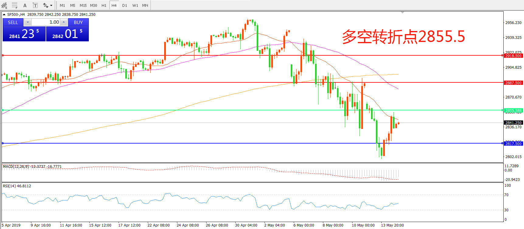 多空转折点:2855.50