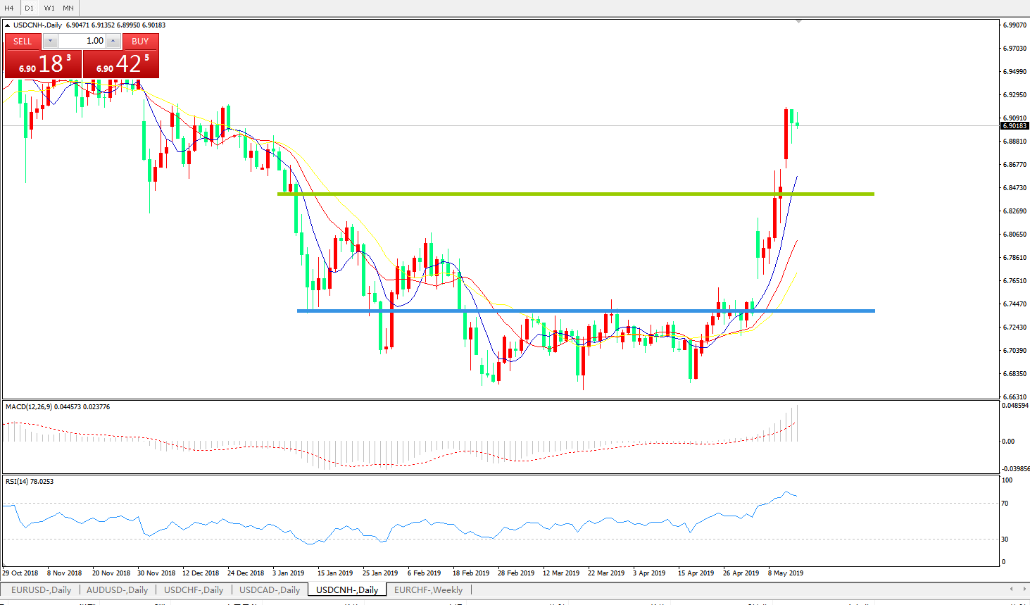 技术面简析:日线图均线呈有序多头排列看多,MACD在0轴上方运行且动能柱0轴上方快速放量,RSI快速走升后超买区域小幅回落,汇价强力上攻后维持整理态势,预计短期汇价有进一步上行空间,重点关注中美贸易争端后续进展。