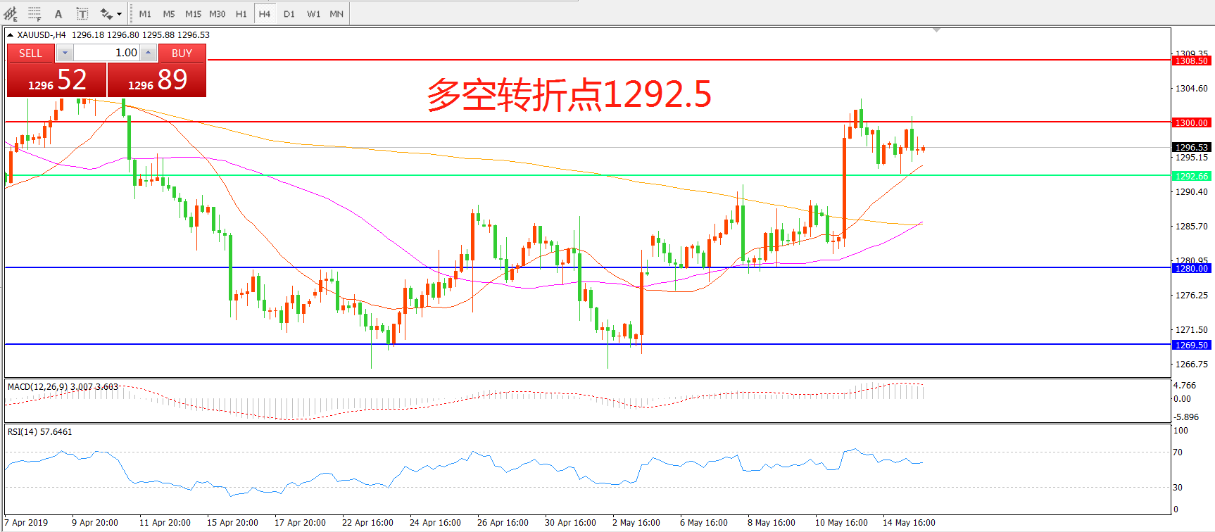 多空转折点:1292.50
