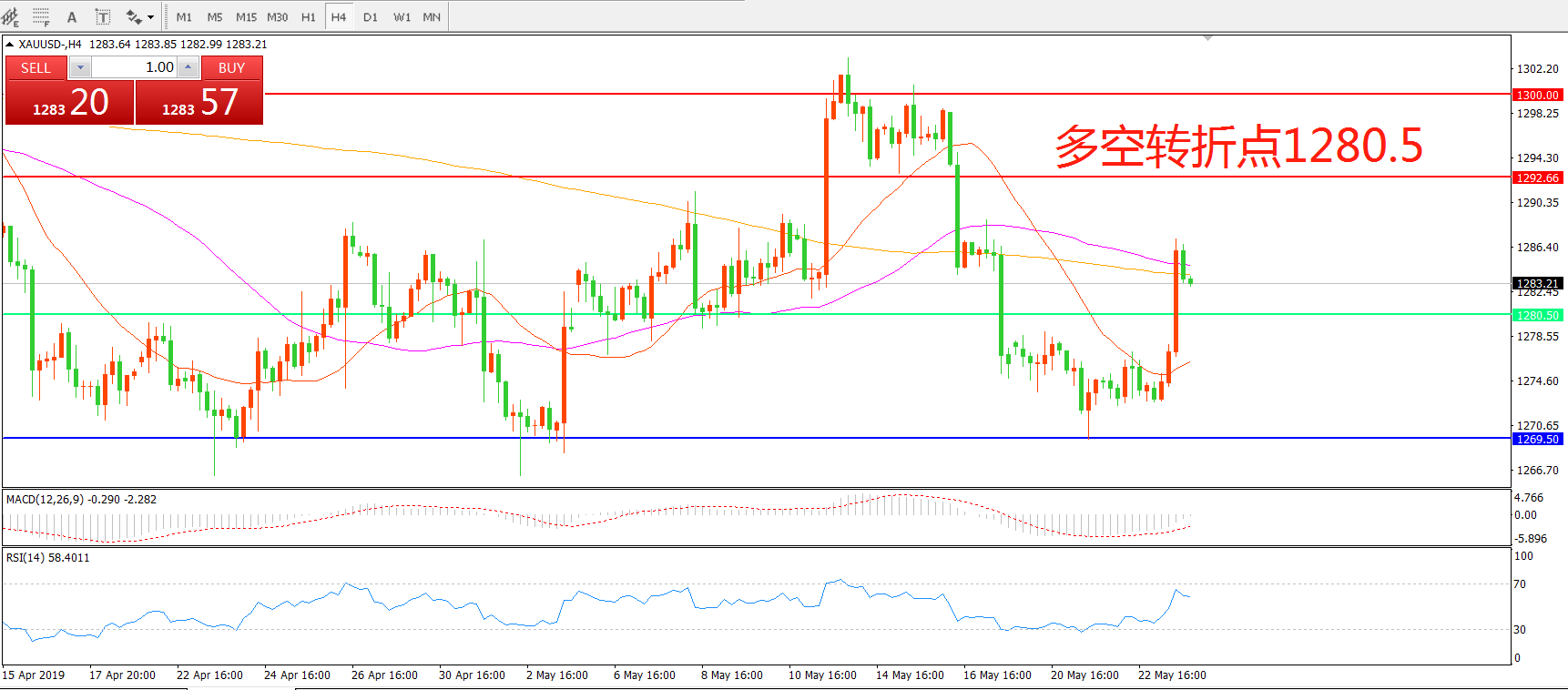 多空转折点:1280.50