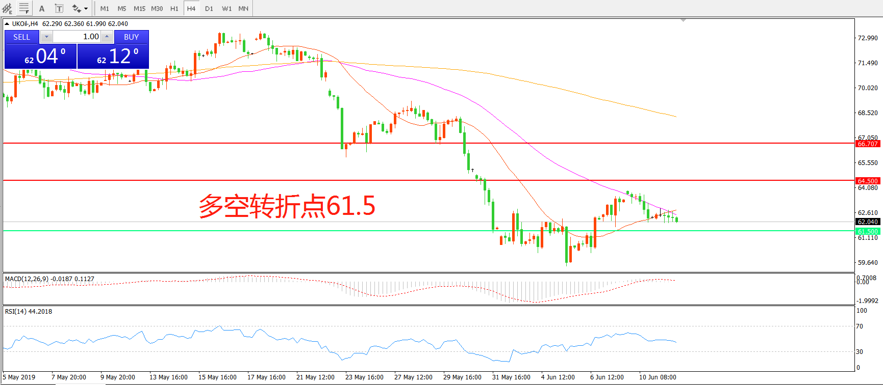 交易策略:在61.50之上看涨,目标64.50    66.70