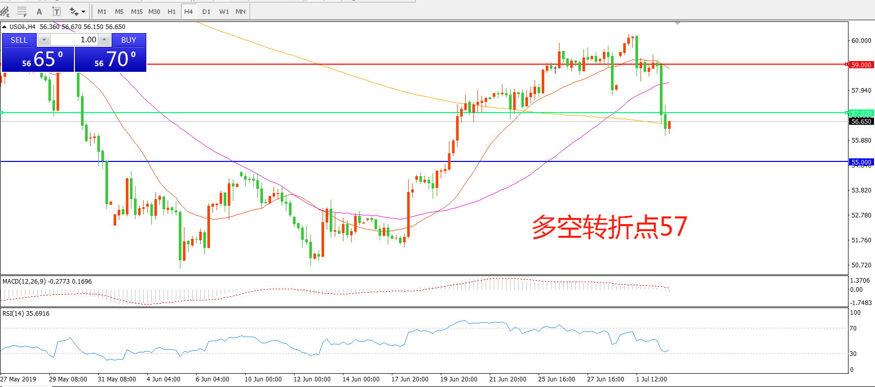 多空转折点:57.00