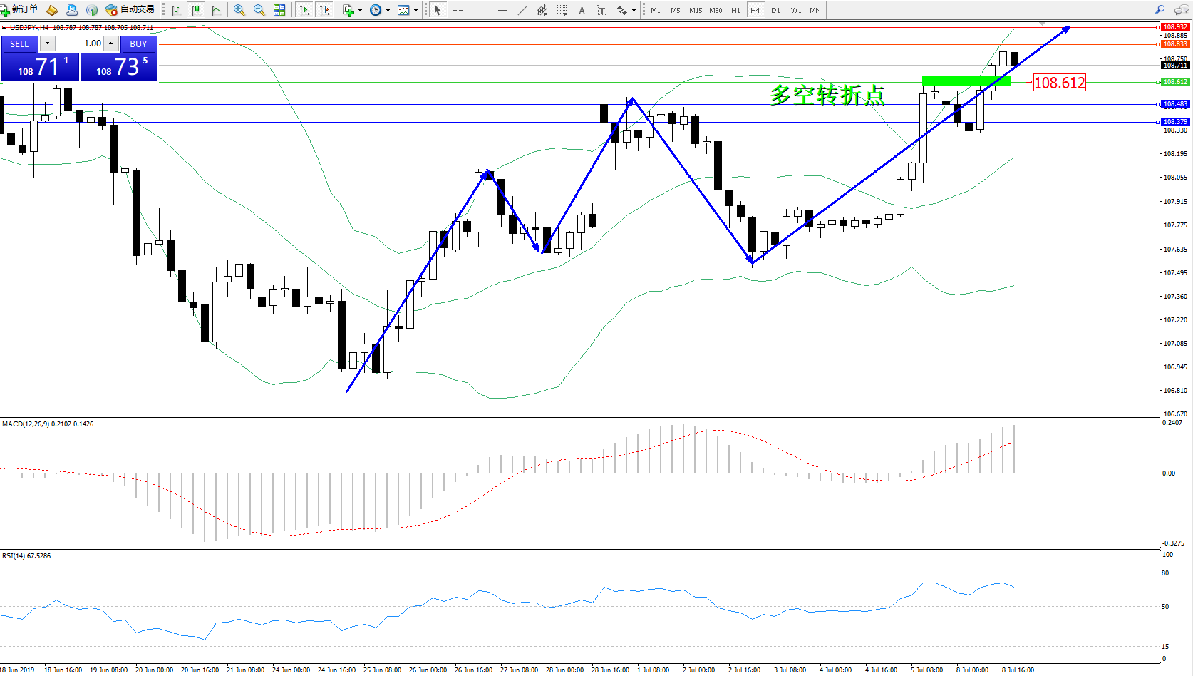 美元兑日元探底回升至108.6附近,重心上移,受益于大好的非农令美联储大幅降息预期减弱,但中东局势再度恶化,日元前景仍被看好,目前鉴于美联储预计会在7月和12月降息,美日利差将会收窄,美元兑日元到2020年年中将跌至104。