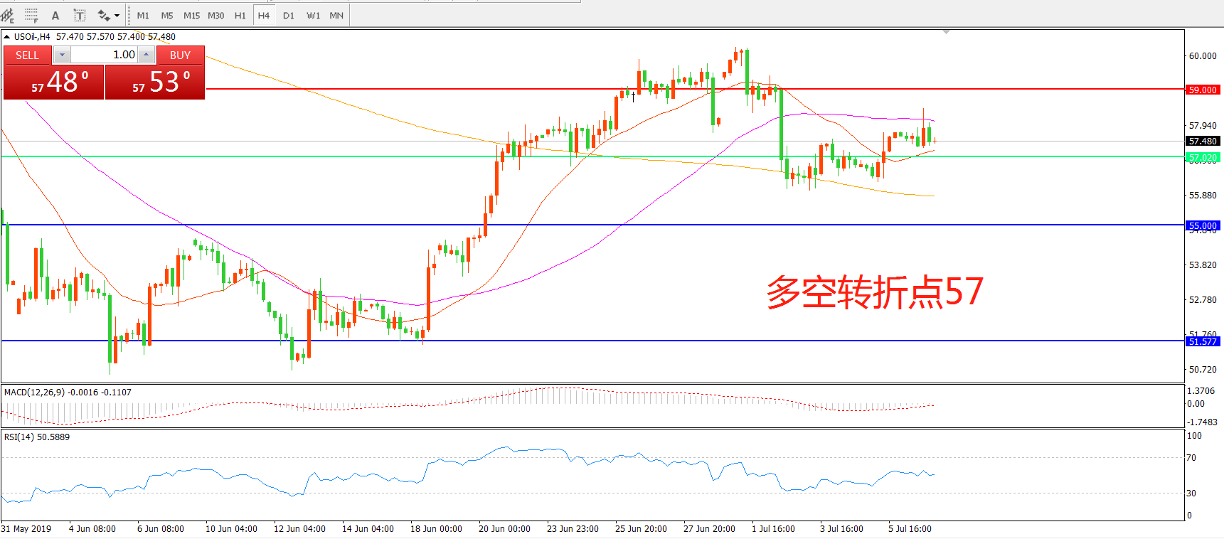 交易策略:在57.00  之上看涨,目标59.00    61.00