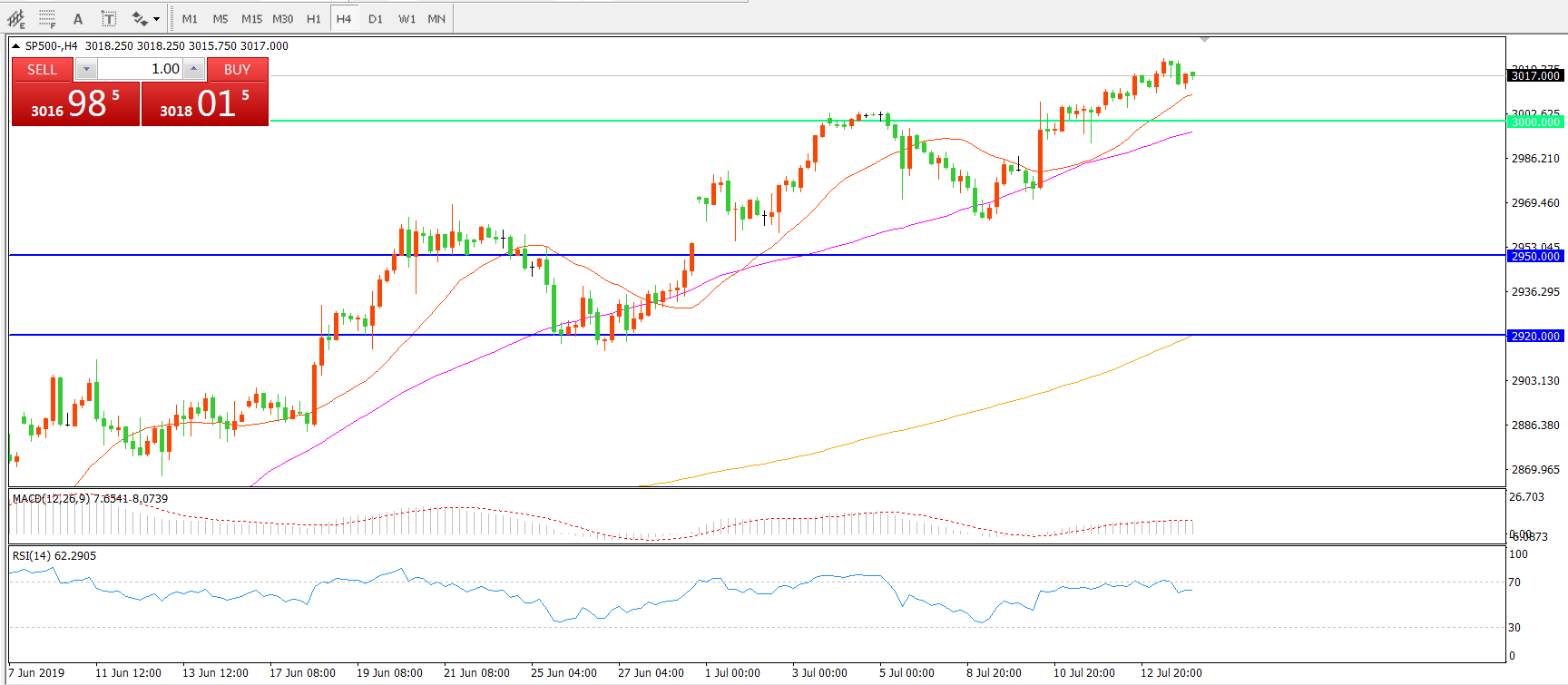 交易策略:在3000.00之上看涨,目标3020.00     3050.00