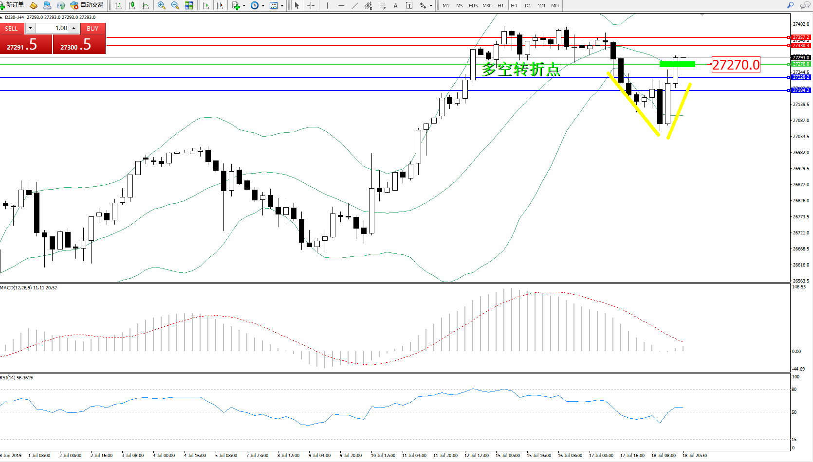 道琼斯指数7月18日(周四)收盘上涨3.10点,涨幅0.01%,报27222.97点。美联储是为了管理风险而降息,而非针对当前经济环境,货币政策的变动对经济影响普遍存在滞后的情况,平均为5-6个季度。尽管近期经济数据十分重要,但只是影响央行前景的因素之一。其次,降息的主要驱动因素是不确定性,而非经济增长放缓。预计美联储不会显著改变前景的风险评估,7月将降息25个基点,2020年第一季度将再度降息25个基点。