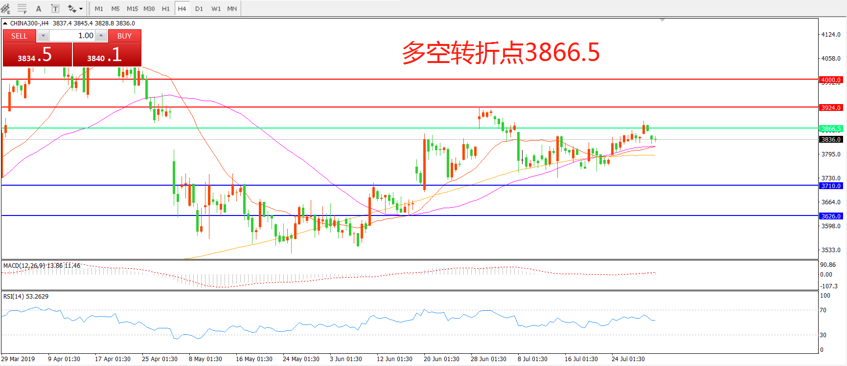 多空转折点:3866.50