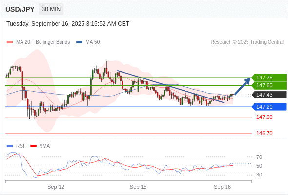 在 147.20 之上,看涨,目标价位为 147.60 ,然后为 147.75 。