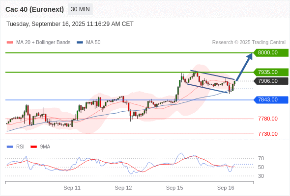 法国CAC指数期货 (Euronext) (U5) 当日内: 上升趋势。