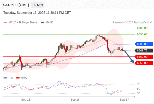 交易策略: 在 6680.00 之下,看跌,目标价位为 6660.00 ,然后为 6650.00 。