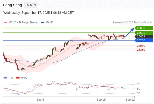 在 26280 之上,看涨,目标价位为 26600 ,然后为 26800 。