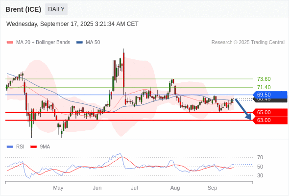 交易策略: 在 69.50 之下,看跌,目标价位为 65.00 ,然后为 63.00 。