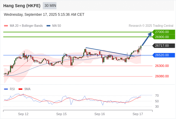 在 26520.00 之上,看涨,目标价位为 26900.00 ,然后为 27000.00 。