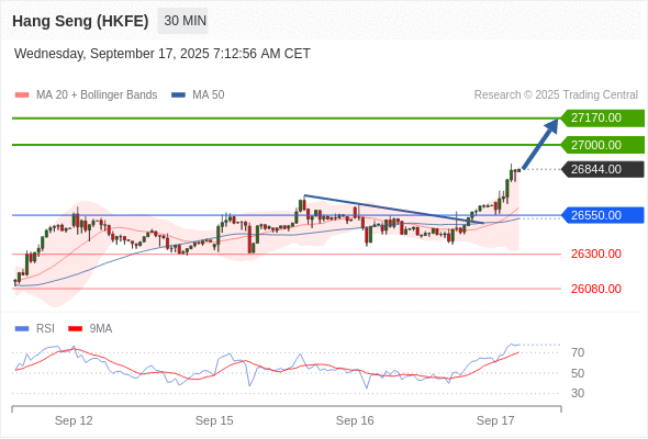 在 26550.00 之上,看涨,目标价位为 27000.00 ,然后为 27170.00 。