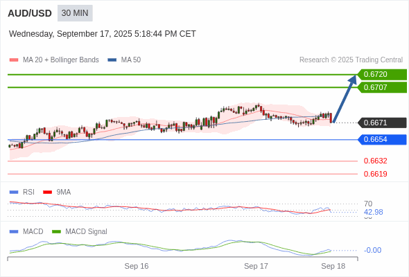 澳元/美元 当日内 : 有上涨的可能,目标价位定在 0.6720 。