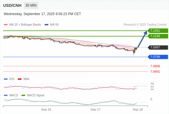 备选策略: 如跌破 7.0799 ,USD/CNH 目标方向定在 7.0606 和 7.0491 。