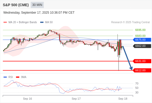 交易策略: 在 6675.00 之下,看跌,目标价位为 6631.00 ,然后为 6612.00 。