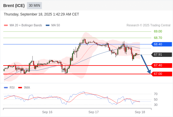在 68.40 之下,看跌,目标价位为 67.40 ,然后为 67.00 。