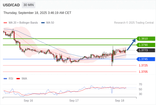 在 1.3745 之上,看涨,目标价位为 1.3790 ,然后为 1.3810 。