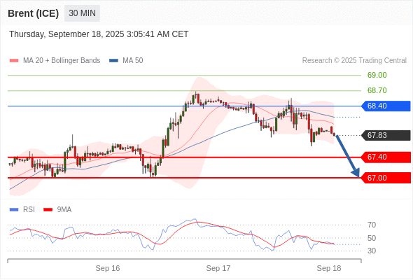 在 68.40 之下,看跌,目标价位为 67.40 ,然后为 67.00 。