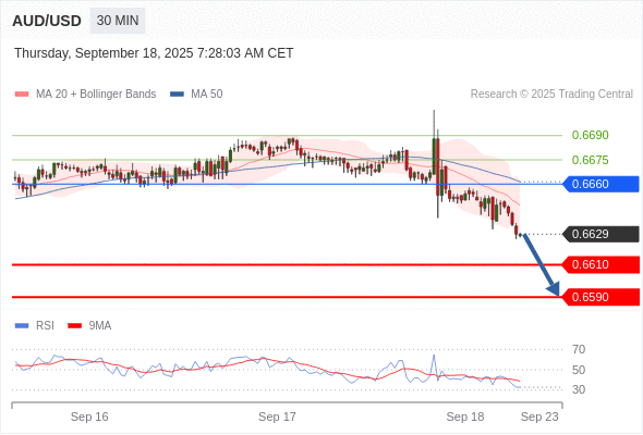 在 0.6660 之下,看跌,目标价位为 0.6610 ,然后为 0.6590 。