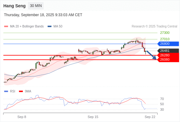 在 26800 之下,看跌,目标价位为 26280 ,然后为 26080 。