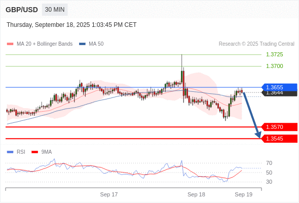 在 1.3655 之下,看跌,目标价位为 1.3570 ,然后为 1.3545 。