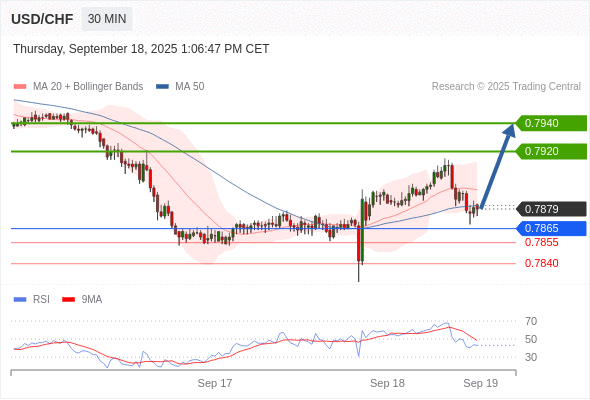 在 0.7865 之上,看涨,目标价位为 0.7920 ,然后为 0.7940 。