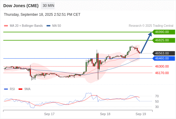 在 46460.00 之上,看涨,目标价位为 46825.00 ,然后为 46990.00 。