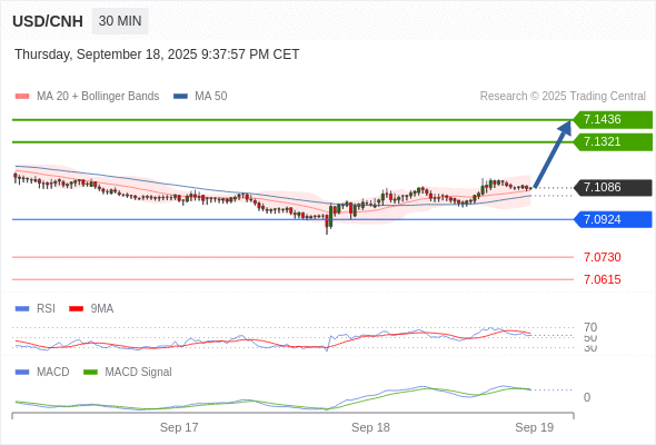 备选策略: 向下跌破 7.0924 ,将带来继续下跌的趋势,目标位为 7.0730 然后为 7.0615 。