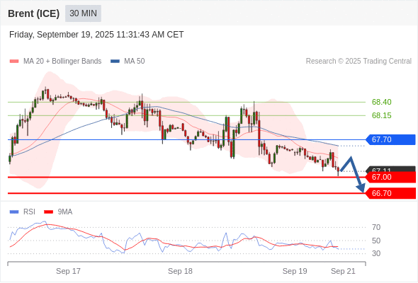 交易策略: 在 67.70 之下,看跌,目标价位为 67.00 ,然后为 66.70 。