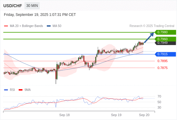 在 0.7915 之上,看涨,目标价位为 0.7960 ,然后为 0.7980 。