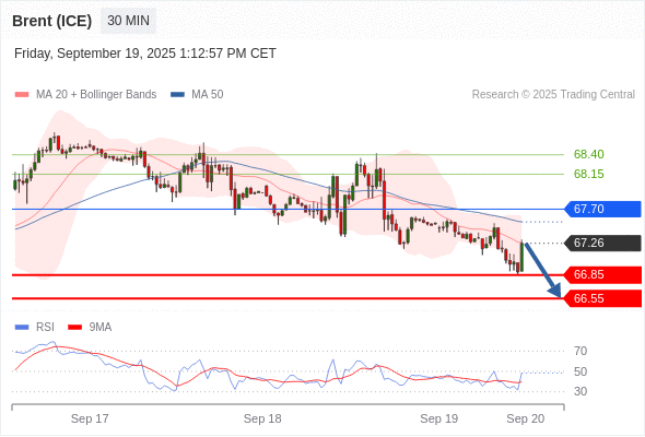 在 67.70 之下,看跌,目标价位为 66.85 ,然后为 66.55 。