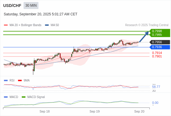 首页 > > 美元/瑞郎 当日内 : 看涨,当 0.7936 为支撑位,目标定在0.7998。