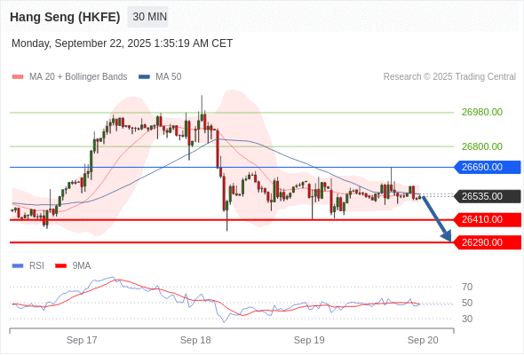 在 26690.00 之下,看跌,目标价位为 26410.00 ,然后为 26290.00 。