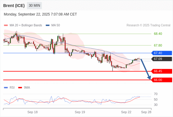 交易策略: 在 67.40 之下,看跌,目标价位为 66.45 ,然后为 66.00 。
