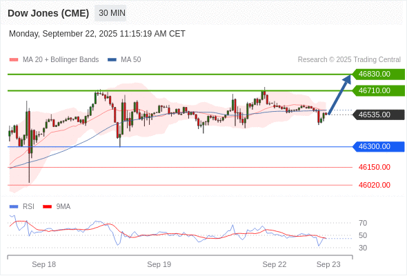 在 46300.00 之上,看涨,目标价位为 46710.00 ,然后为 46830.00 。