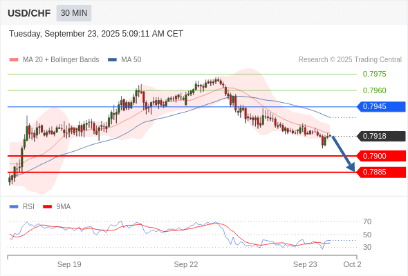 在 0.7945 之下,看跌,目标价位为 0.7900 ,然后为 0.7885 。